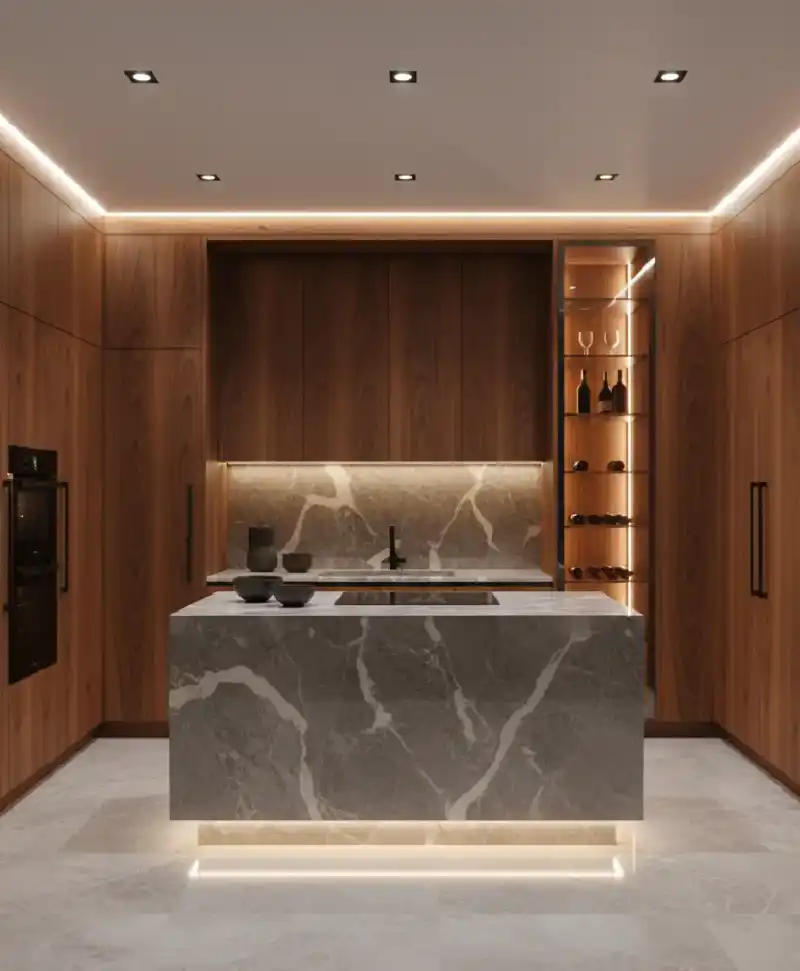 Royal Walnut & Pietra Grey Marble Timeless Modern Warmth