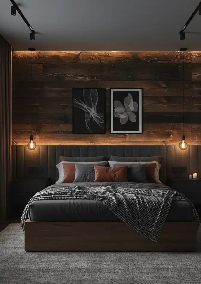 Rustic Industrial Bedroom with Warm Accents