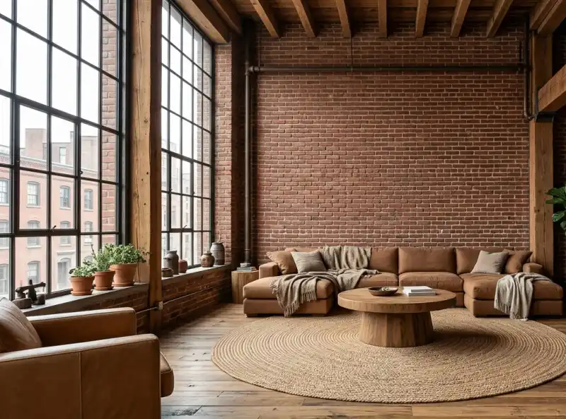 Rustic Living Room Idea: Industrial Loft Integration with Exposed Red Brick