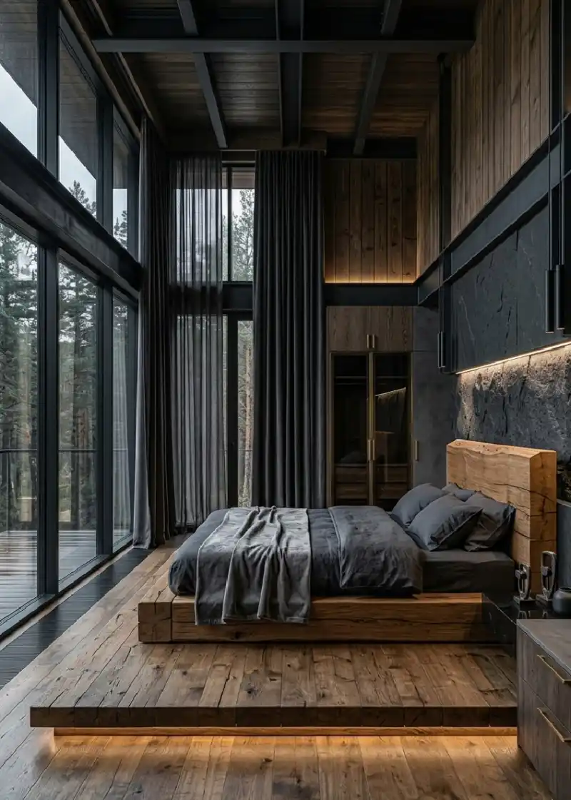 Rustic Modern Luxury Bedroom: Industrial Steel & Weathered Grain Synergy