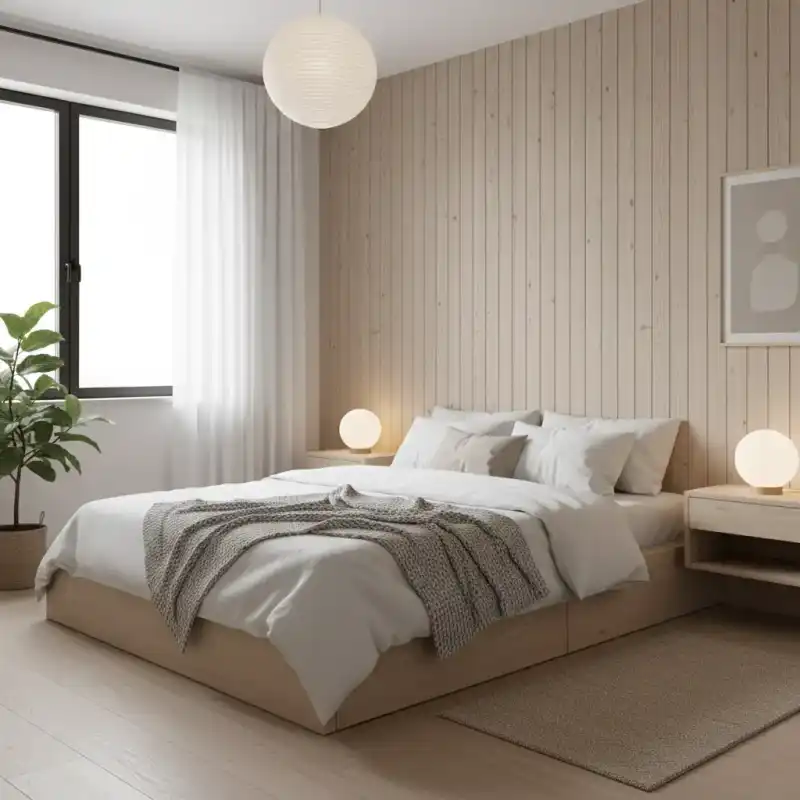 Scandinavian Bedroom with Light Wood Finishes