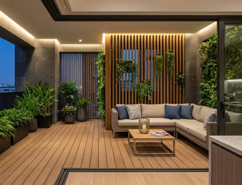 This balcony exemplifies the 2026 trend of blurring the line...