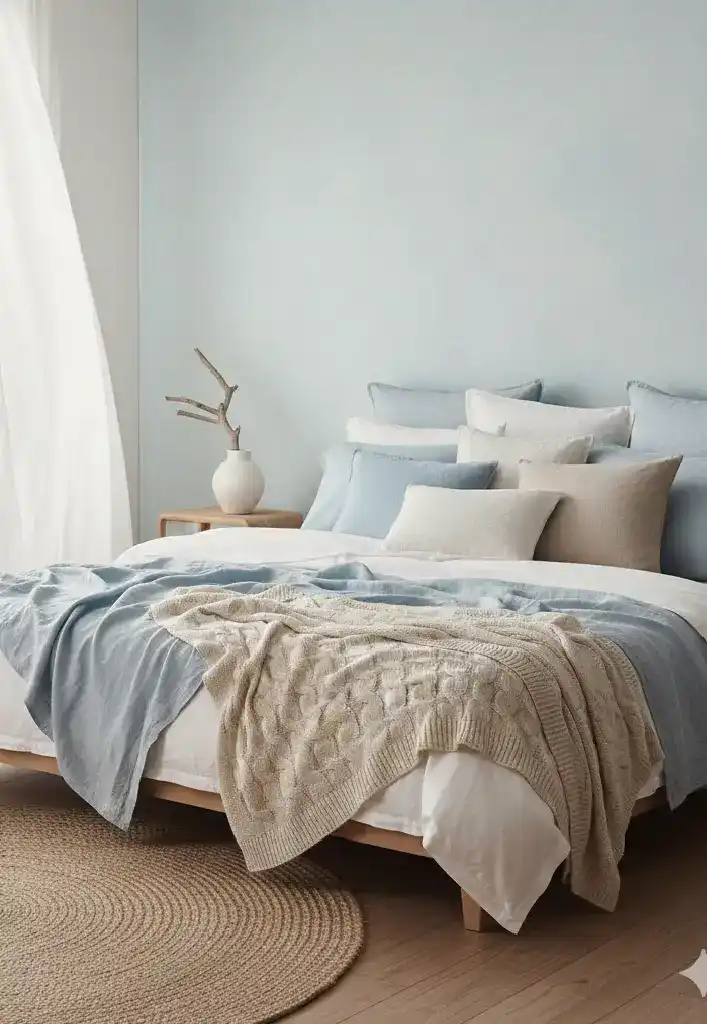 Seaside Serenity Minimalist Bedroom with Rich Textures