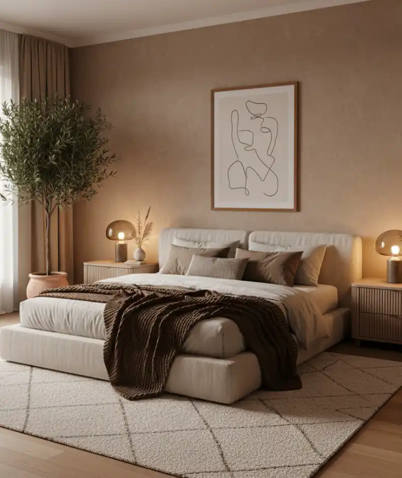 Serene Desert-Inspired Bedroom Warm Neutrals & Organic Textures