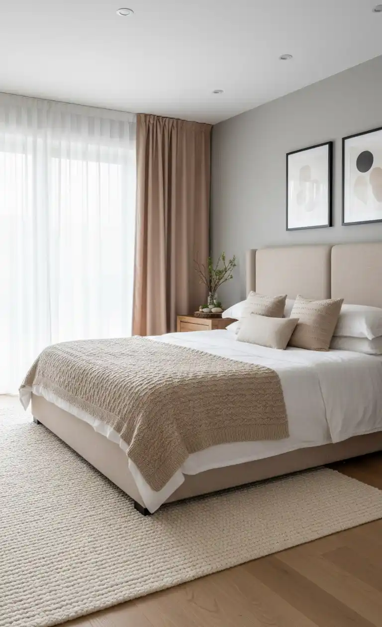 Serene & Modern Master Bedroom with Fresh Botanical Accents