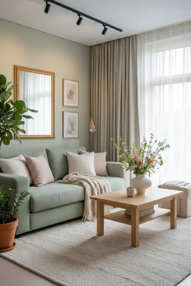 Serene Sage & Blush Living Room with Spring Florals
