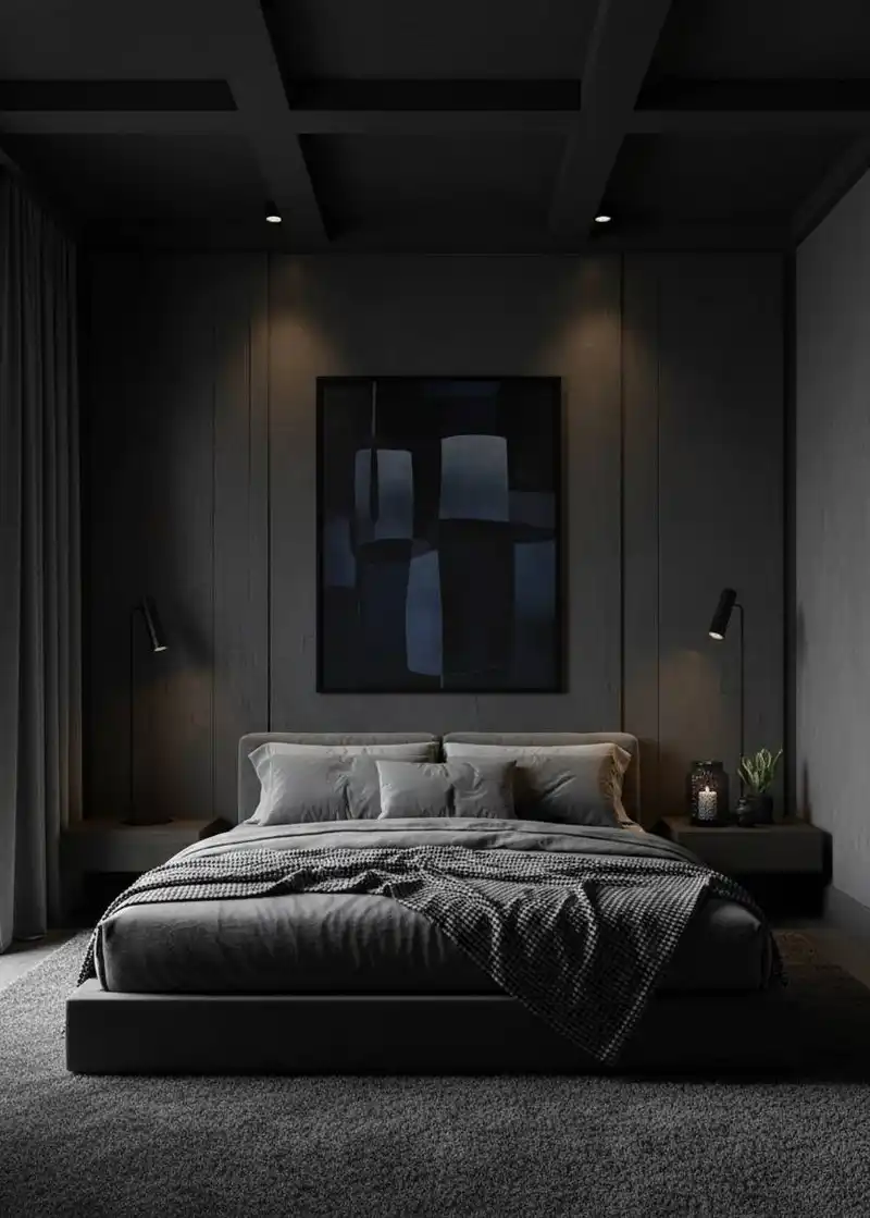 Shadows of Elegance: A Minimalist Noir Bedroom Design