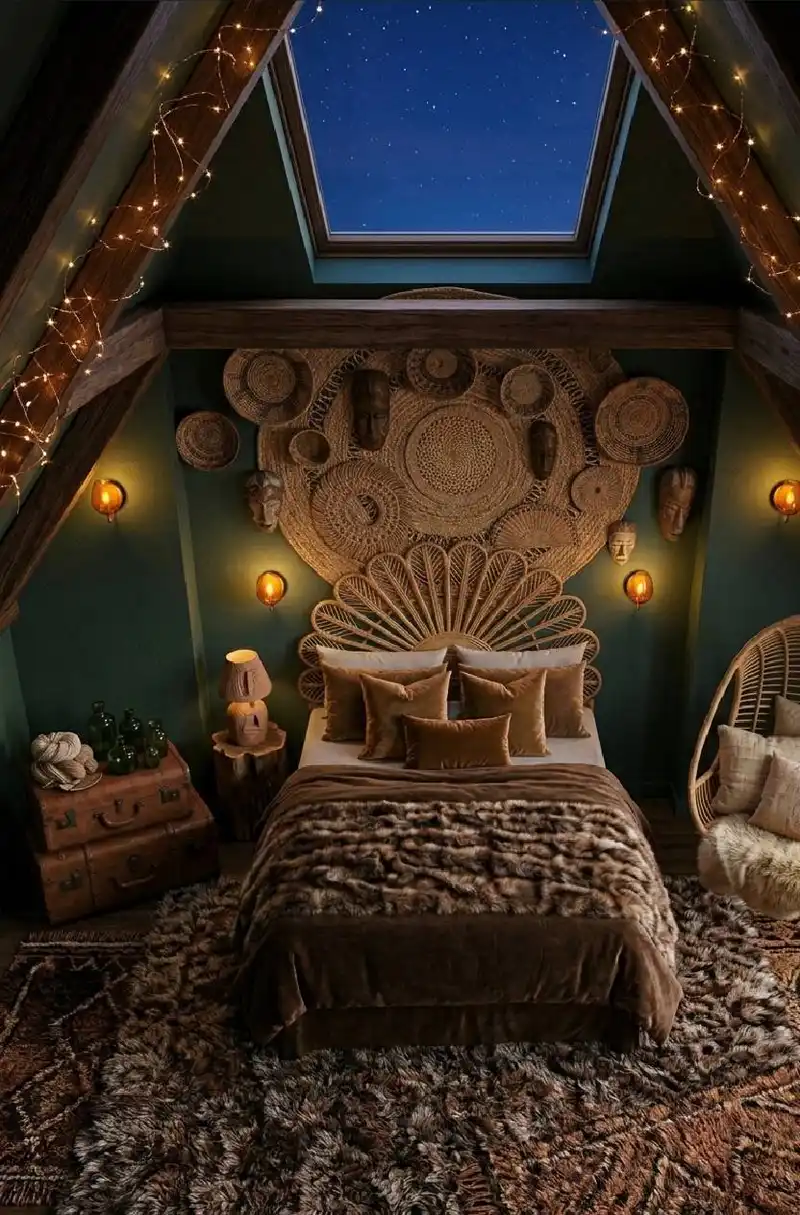 Slanted Ceilings & Woven Wonders bedroom