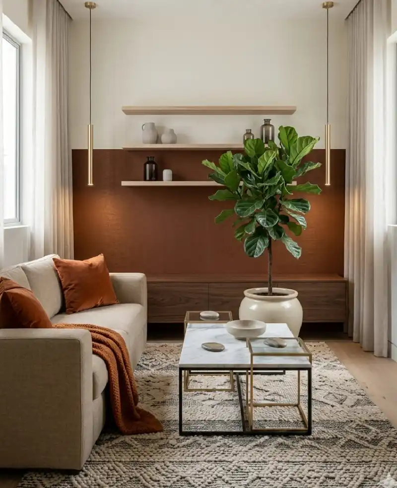Small Minimalist Living Room: Biophilic Minimalism in Urban Settings