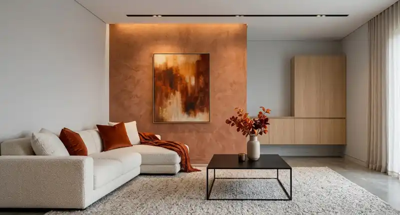 Small Minimalist Living Room: Linear Geometry and Textural Contrast