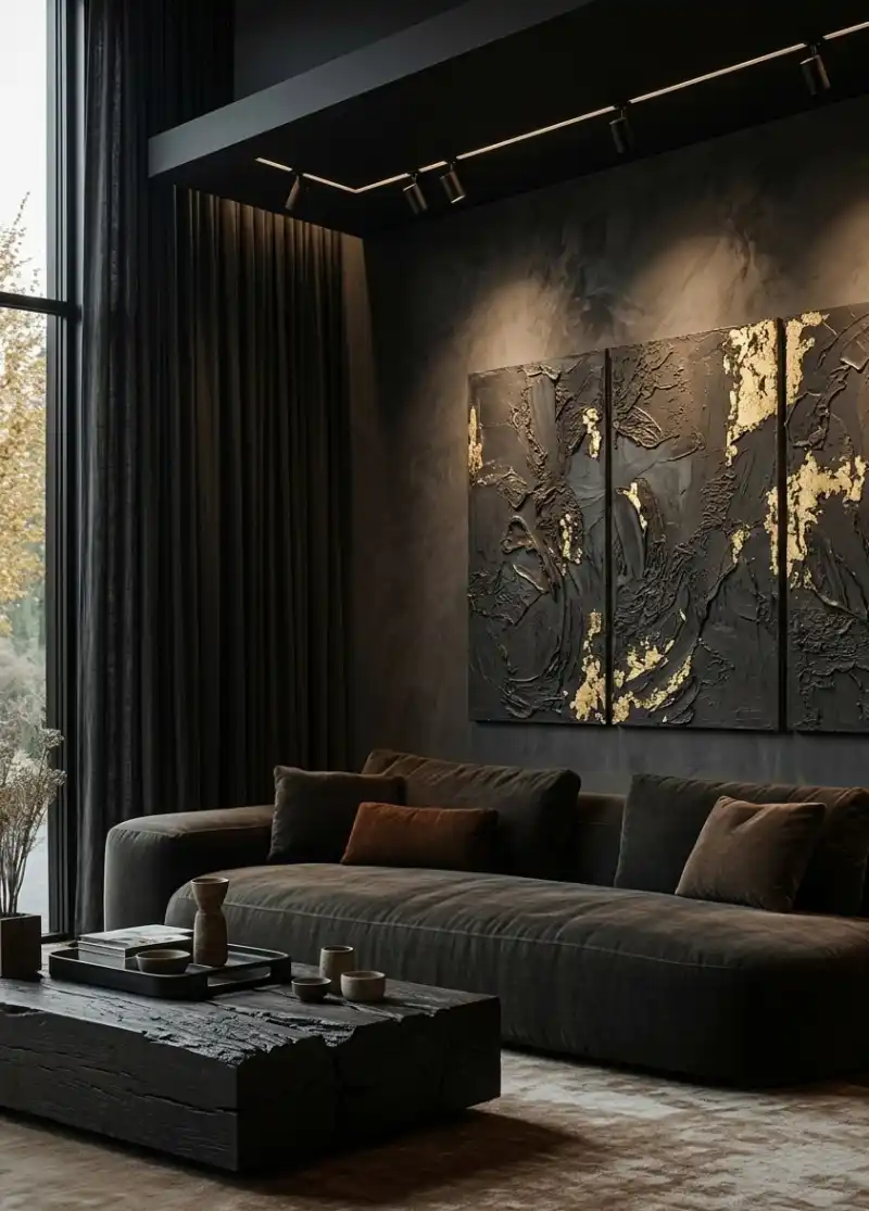 Structural Contrast in Dark Living Room Ideas 2026