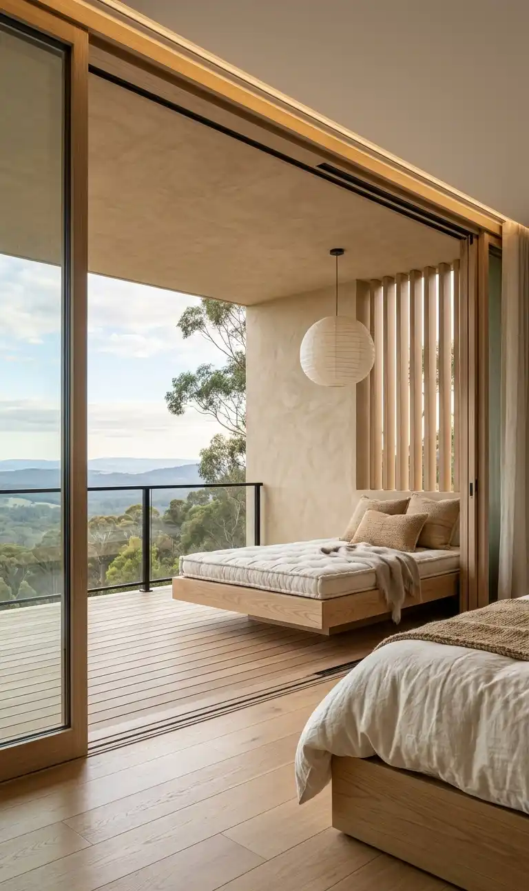 Structural Integration: A Luxury Japandi Bedroom Idea for Panoramic Balconies