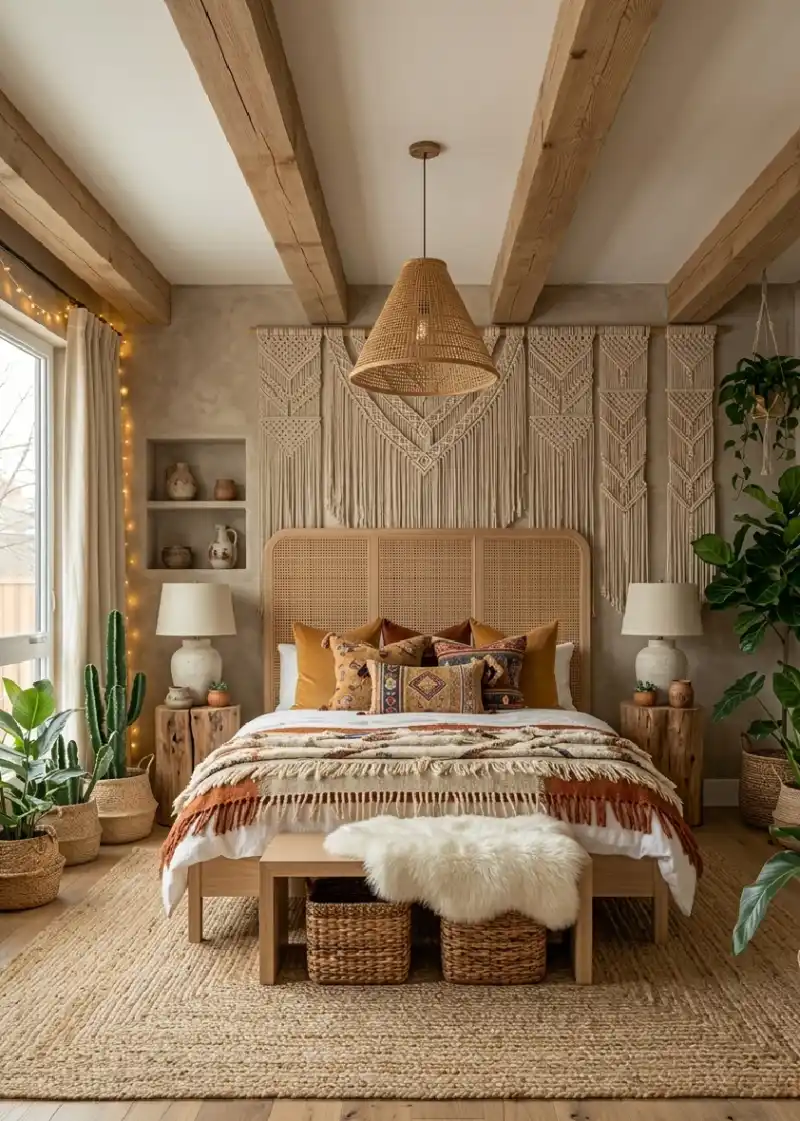 Sustainable Bamboo Structures and Clay Finishes for Boho Chic Bedroom Ideas