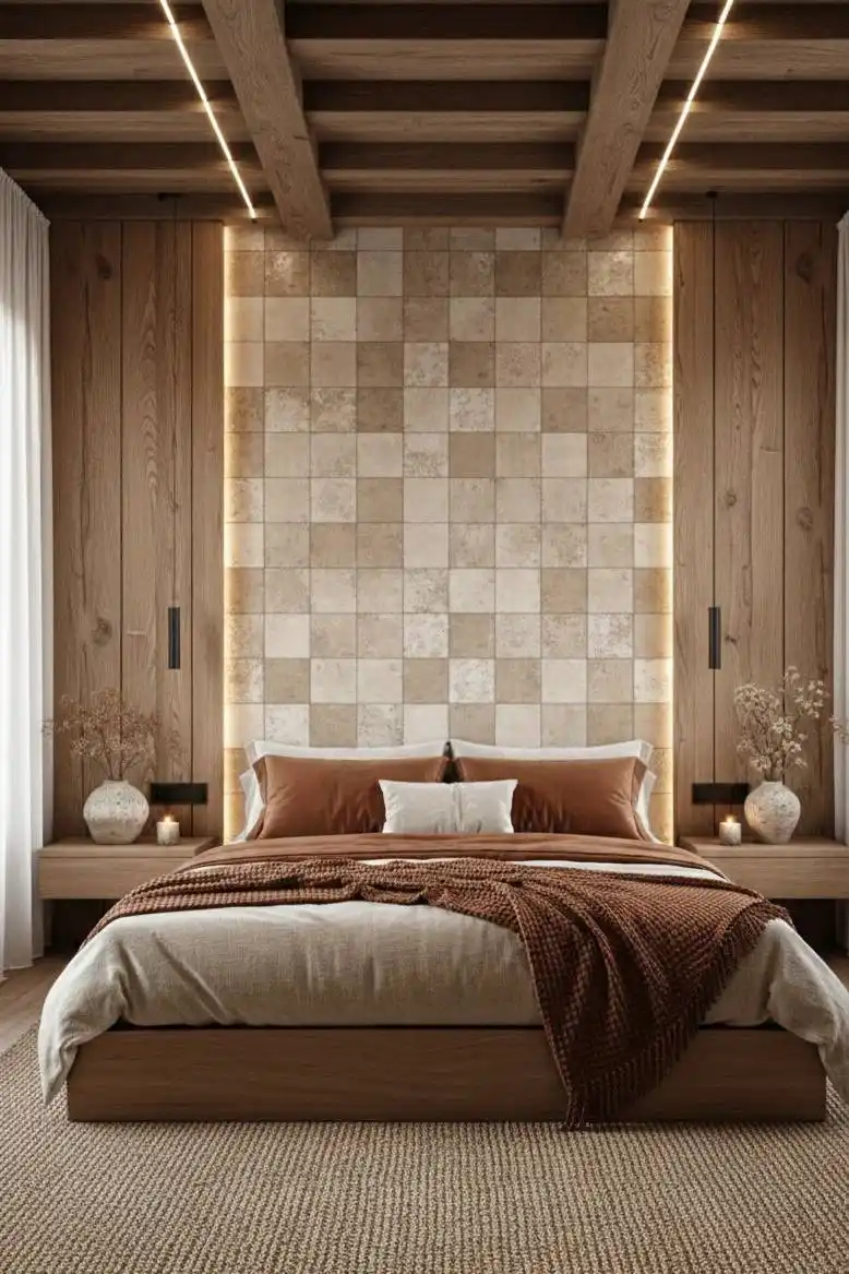 Textured Earth: The Mosaic Travertine Retreat bedroom