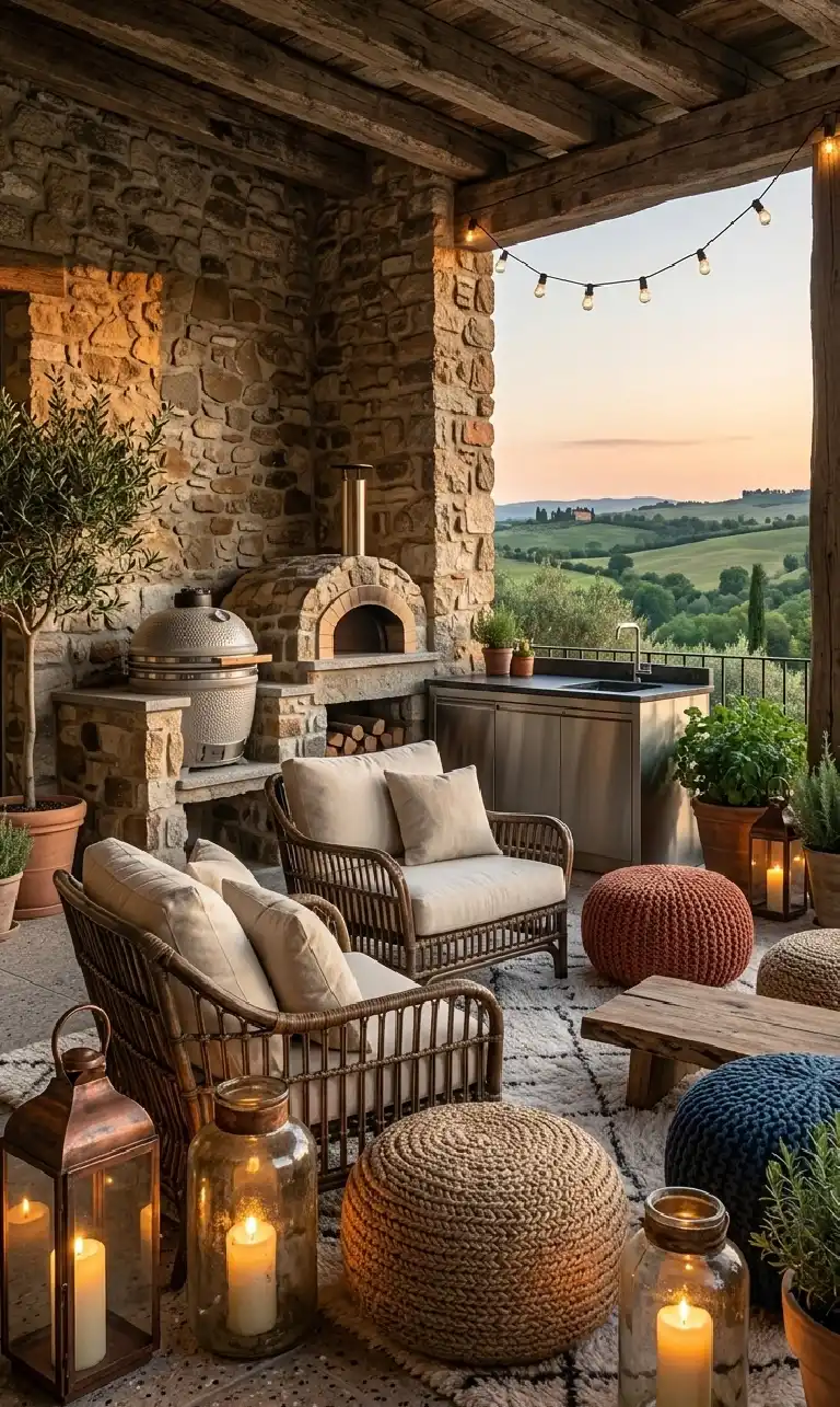 Textured Stone & Fiber Luxury Modern Balcony Idea with Gourmet Functionality