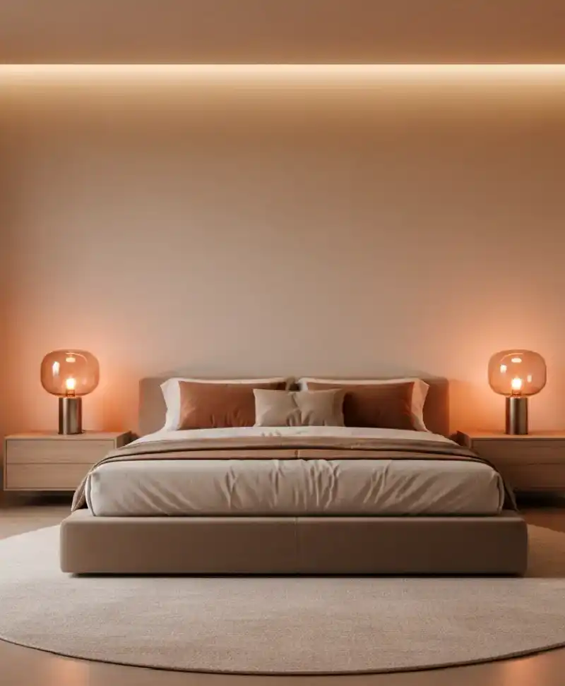 The Amber Minimalist Modern Warm Bedroom