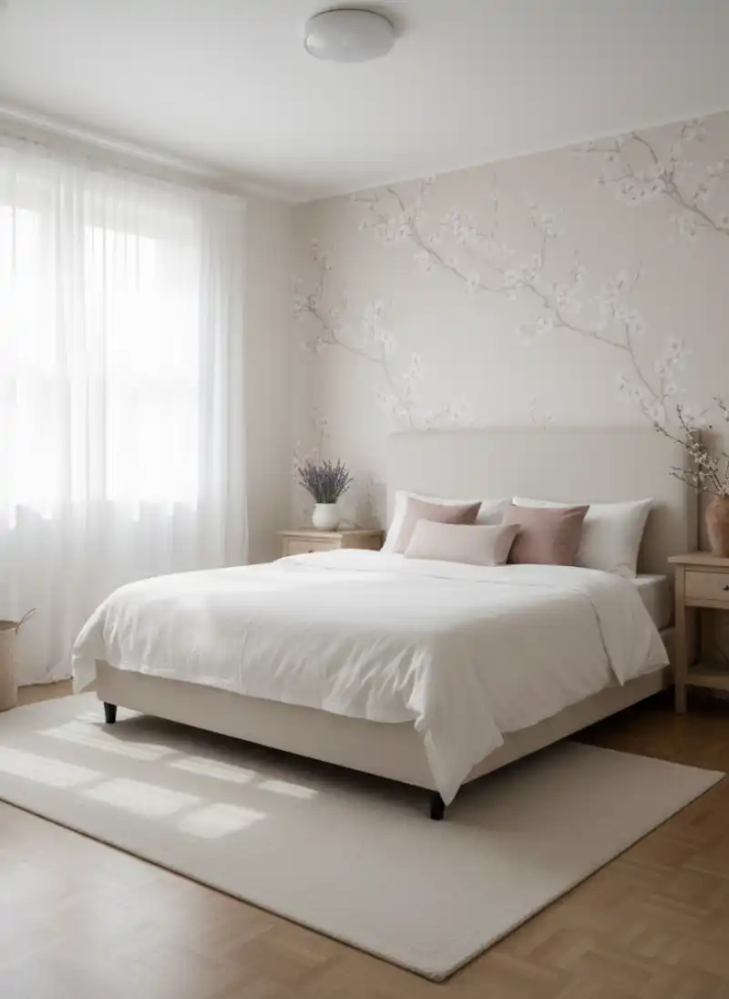 Atmosphere: A serene and airy bedroom designed to capture th...