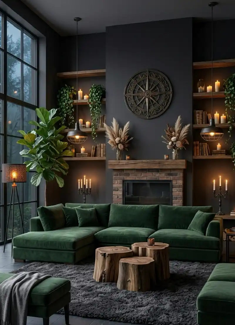 The Botanical Dusk Retreat living room (Organic & Moody)