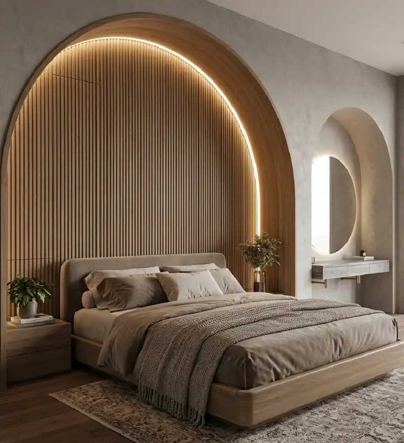 The Curved Alcove: Redefining Luxury Modern Bedroom Idea Standards