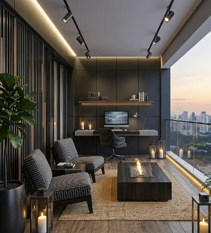 The Executive Suite: Luxury Modern Balcony Idea with Office Integration