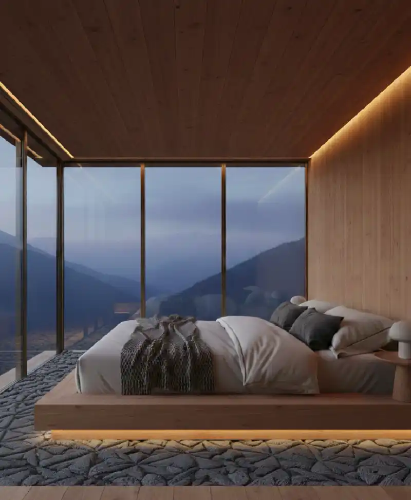 The Floating Cedar Pavilion bedroom