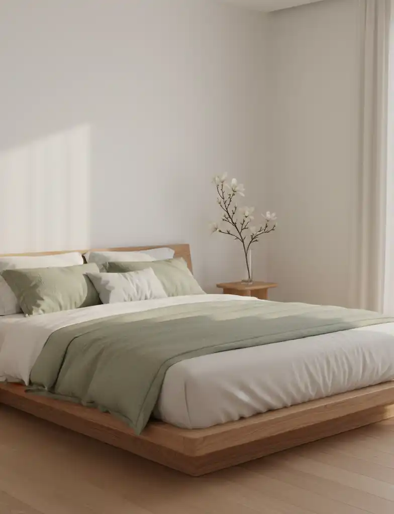 A platform bed crafted from aromatic cedar sits low to the f...