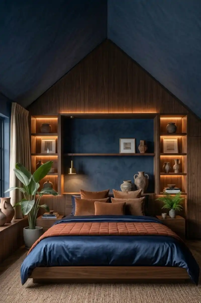 Cozy Navy Blue and Brown Bedroom Designs 2026