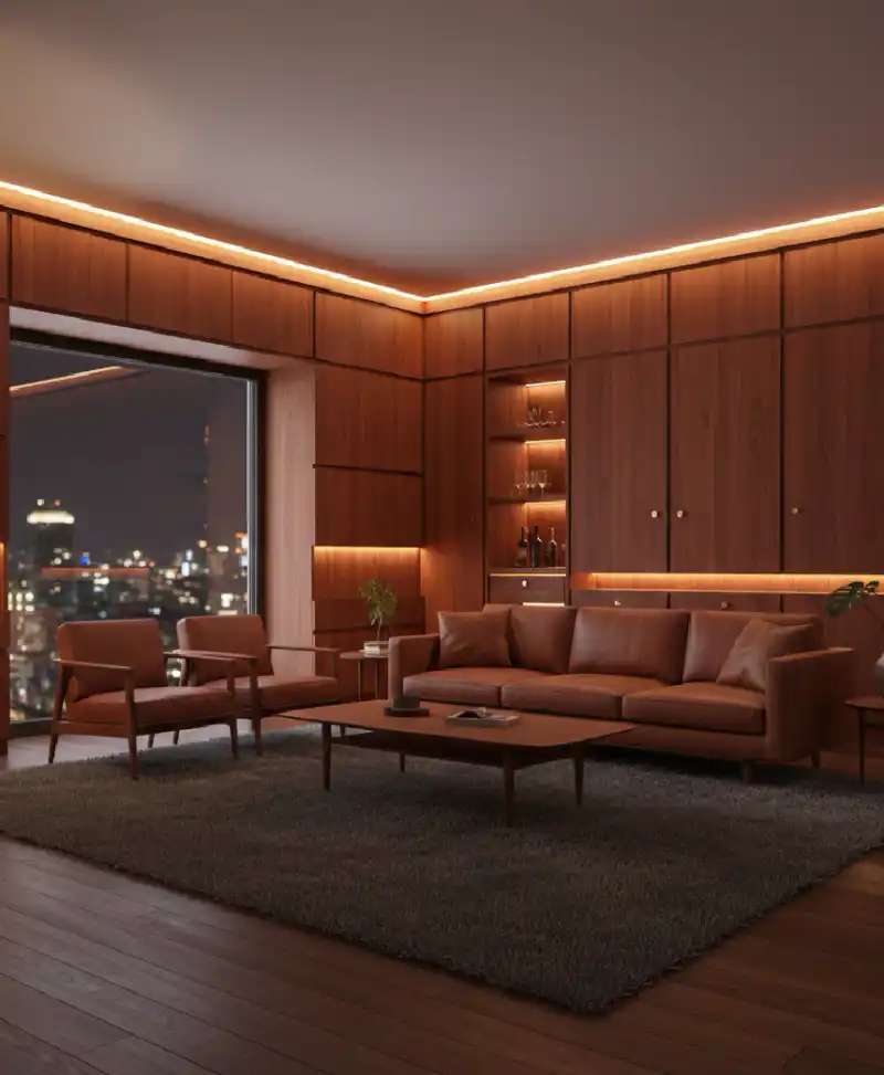The Mid-Century Mahogany Retreat living room
