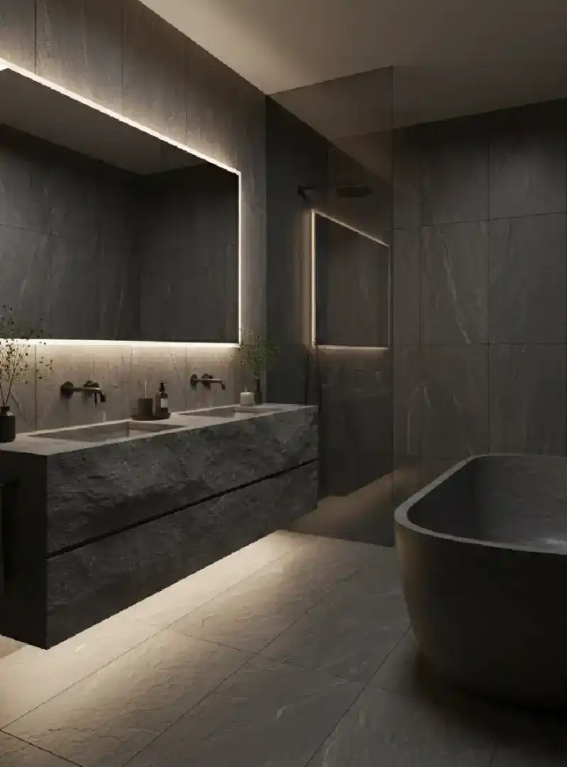 The Monolithic Stone Bathroom Retreat