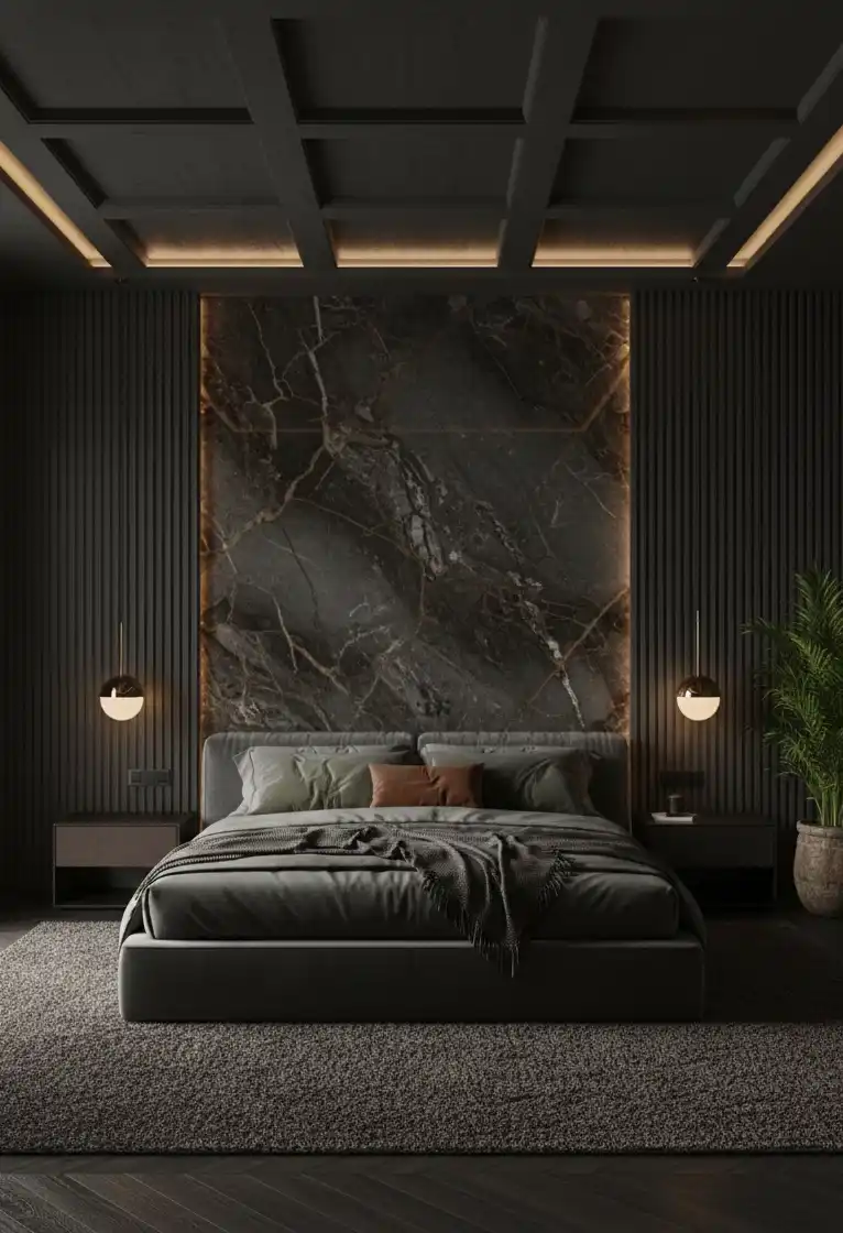 The Noir Marble Sanctuary bedroom