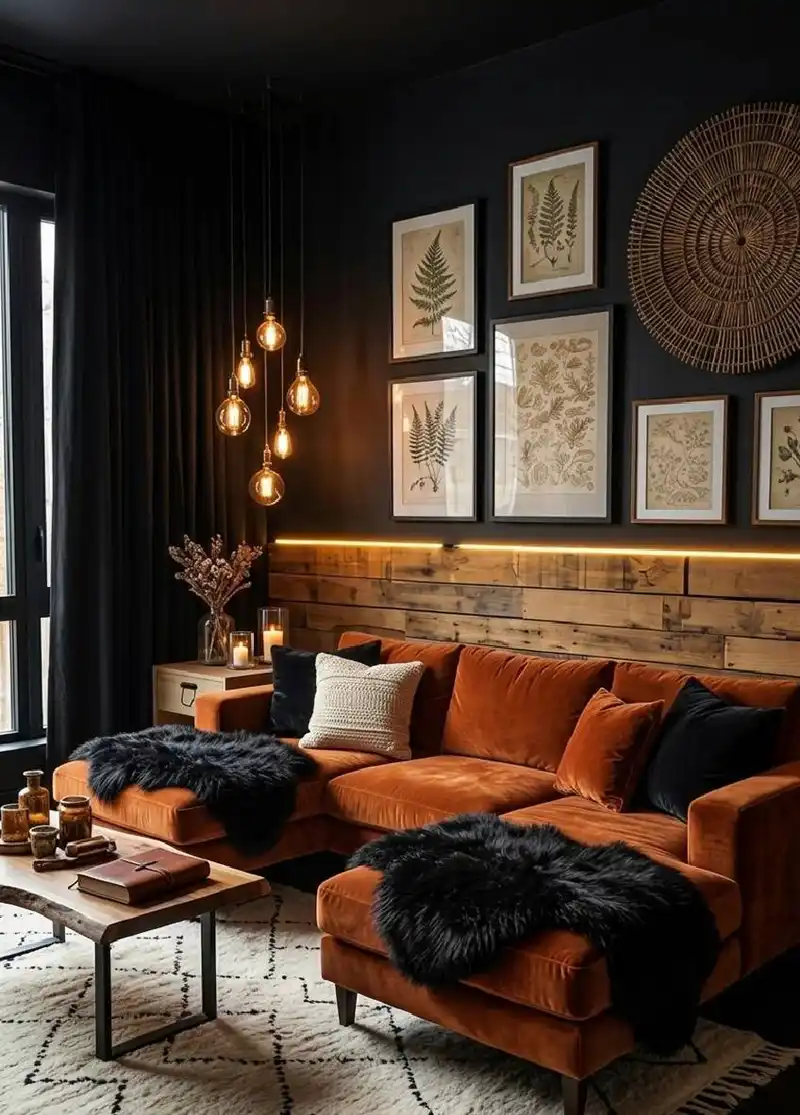 The Obsidian Ember: A Moody & Textural Industrial Living Room