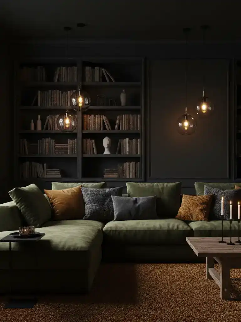 The Obsidian Velvet Den living room