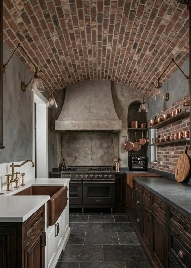 The Scullery-Style Rustic Kitchen Idea with Brick Vaulted Ceilings