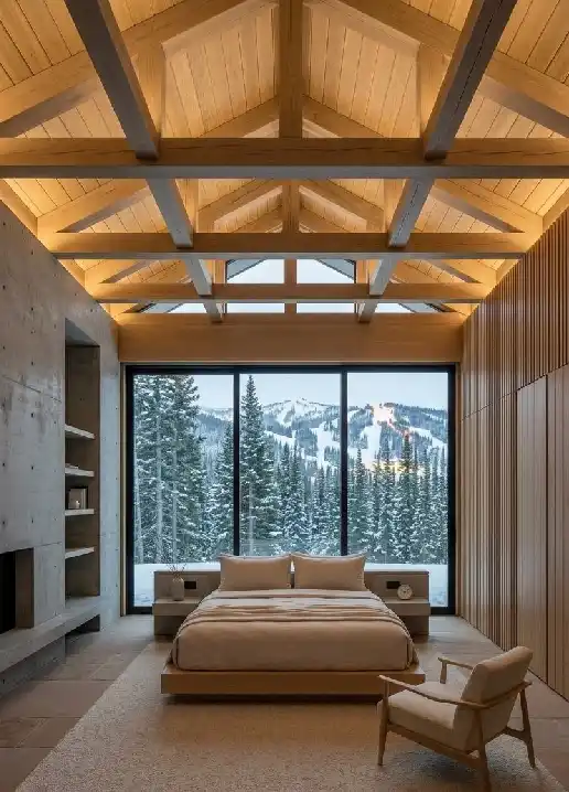 The Structural Canopy: Modern Luxury Bedroom with Exposed Rafters