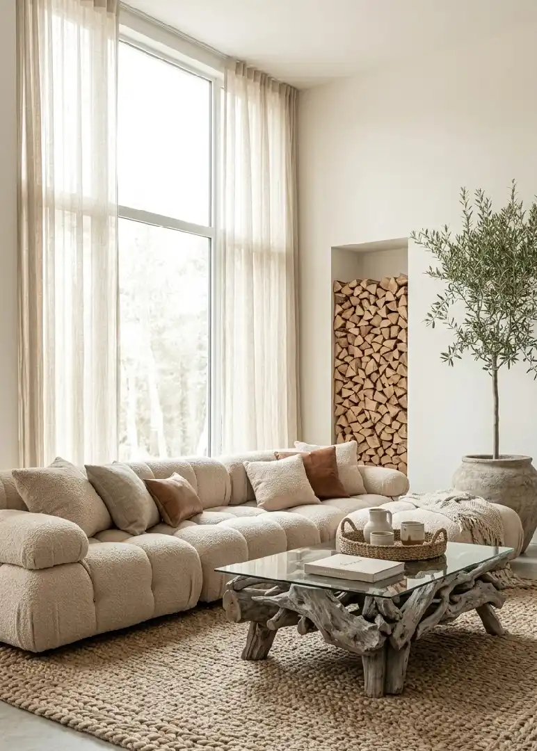 : Whispering Linen & Raw OakDescription: This serene living ...