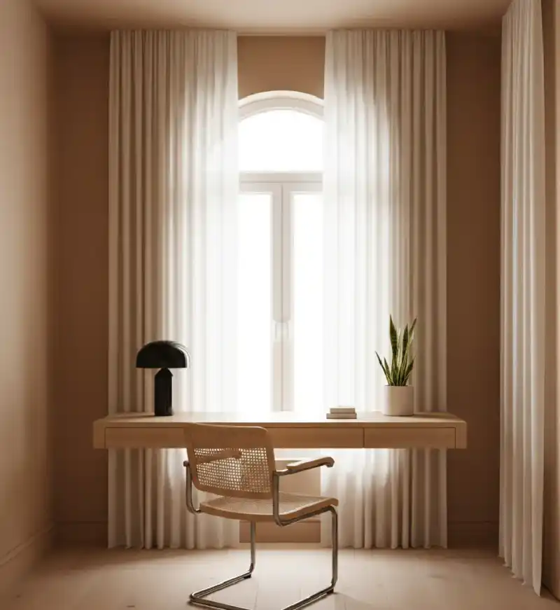A productive workspace designed with a warm palette. A minim...