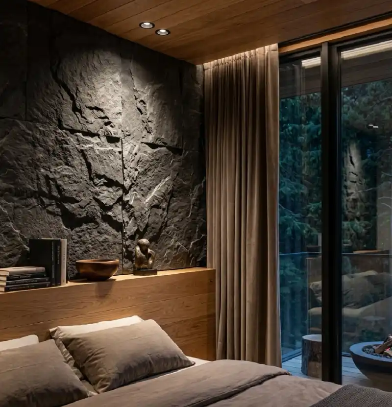 The Vertical Slate Feature Wall: Modern Luxury Bedroom with Textural Contrast