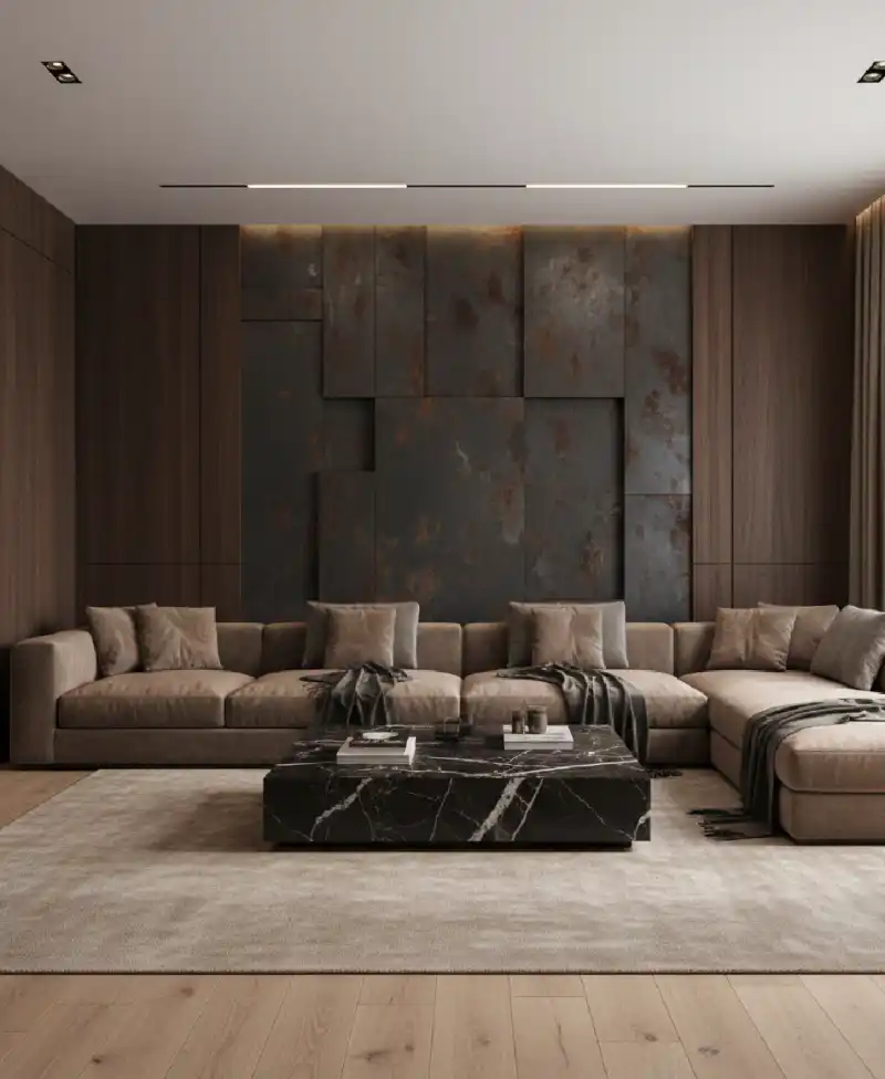 This design focuses on the high-end contrast between dark wa...