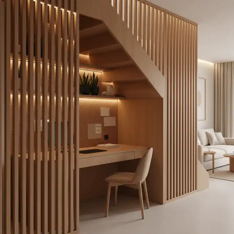 Designed for deep focus, this concept uses vertical wooden s...