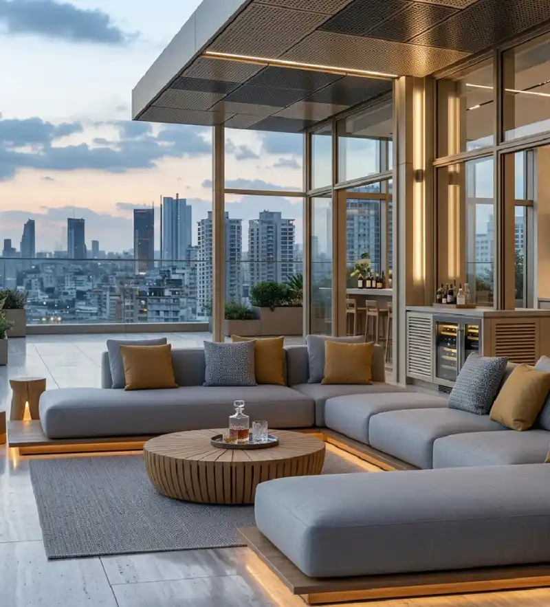 The Zenith Lounge: Luxury Modern Balcony Idea with Anodized Aluminum Framings