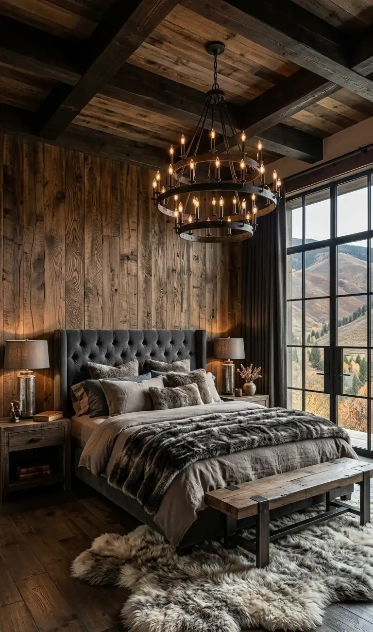 Timber-Clad Sophistication: A Brown Luxury Bedroom Design featuring Raw Wood Textures