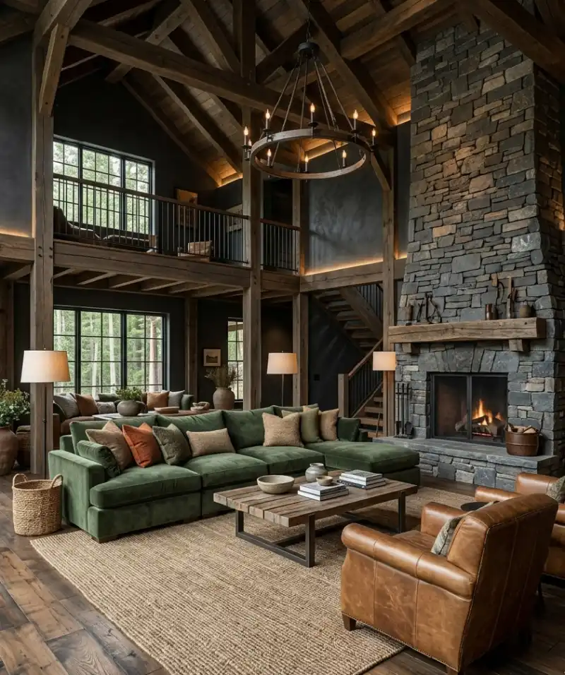 Timber-Frame Elegance within a Rustic Living Room Idea