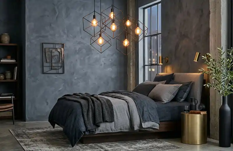 Urban Loft Slate and Exposed Wire Lighting Grey Bedroom Idea