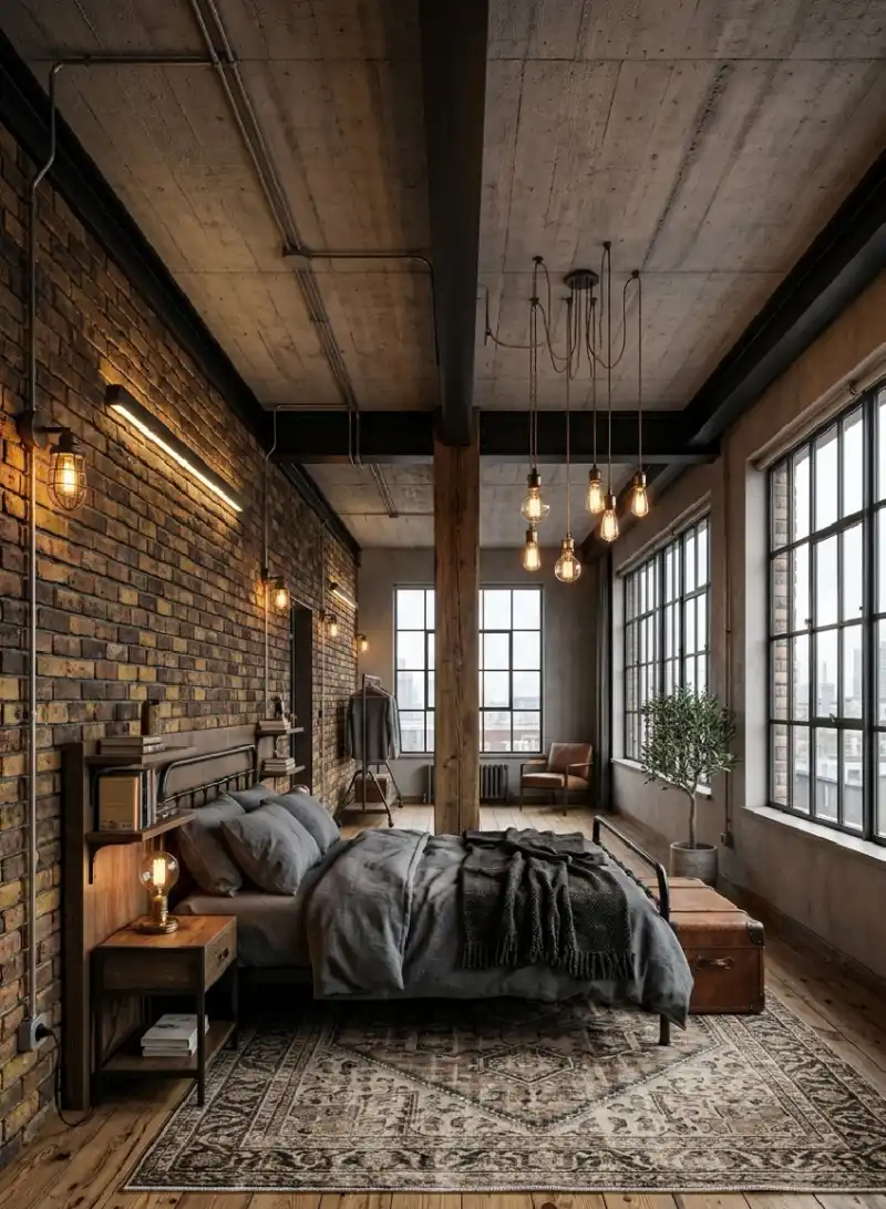 Urban Loft with Exposed Structural Systems Industrial Bedroom Style