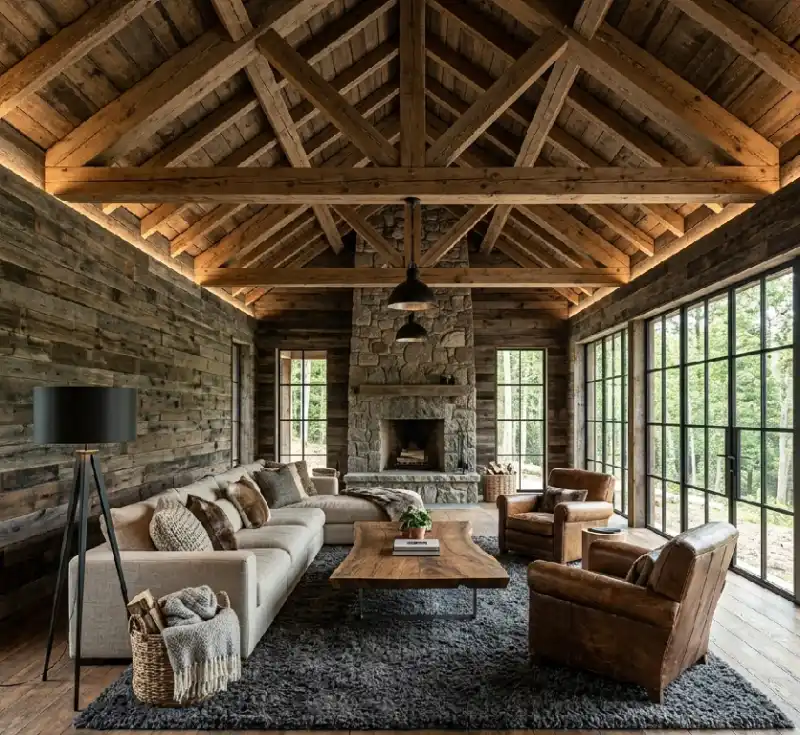 Vaulted Timber Ceilings in a Rustic Living Room Idea