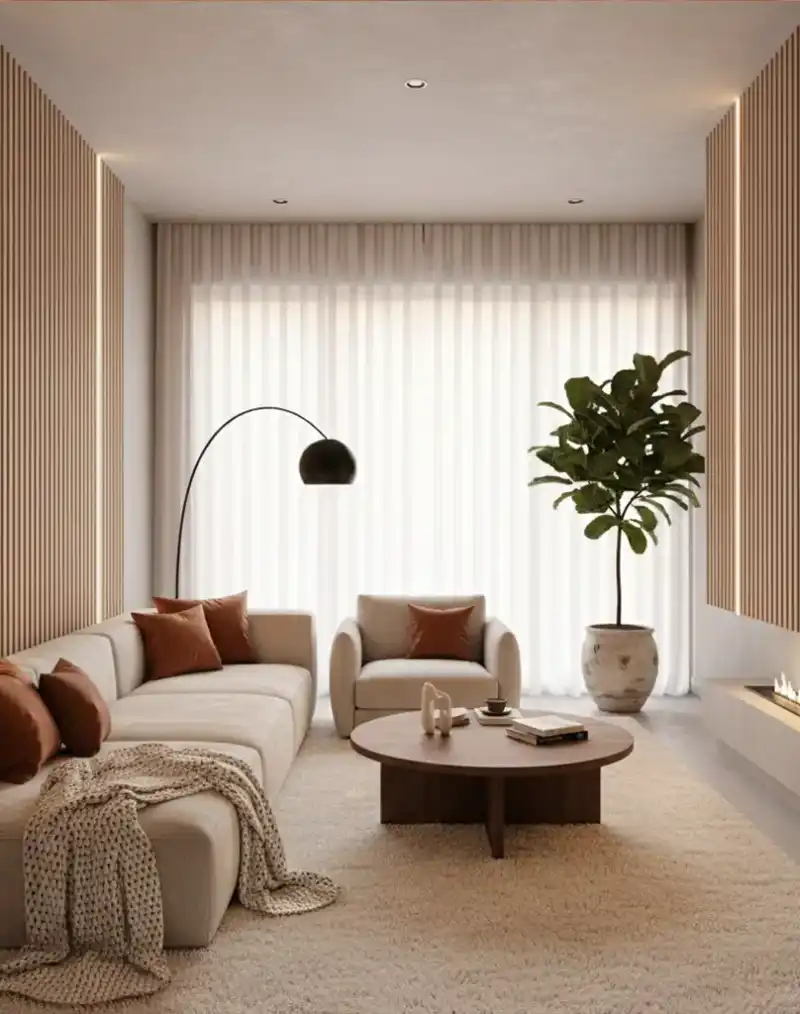 Warm Minimalism with Layered Textures and Ambient Lighting Living room