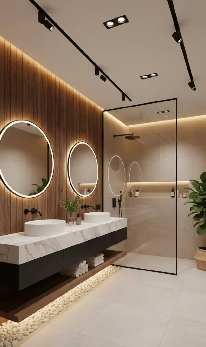 Warm Walnut Retreat: The Modern Zen Sanctuary bathroom